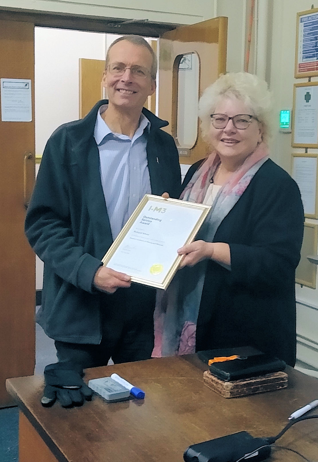 Dr Richard White former past President of the Western Institute of Mining and Minerals and is Principal Consultant - Materials at Lucideon was presented with a Certificate of Outstanding Service on Monday 6 November 2023. The award was presented by IOM3 Senior Vice President Mrs Christine Blackmore at our regular monthly meeting at Keele University.