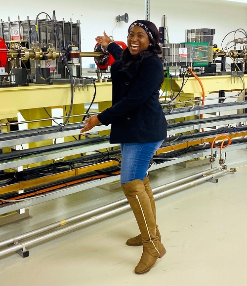 University of the Witwatersrand (South Africa) Energy materials PhD student, Gugulethu Nkala, on a workshop tour of UK’s national synchrotron, Diamond Light Source (Diamond), in March 2020. Credit: Gugulethu Nkala