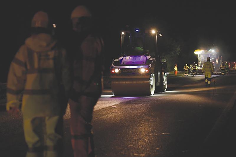 A 40-50m test strip of asphalt binder course containing the ACLA aggregate was eventually laid down on part of the M11 in one night. A control section made with standard binder-course material of similar size was placed in front.