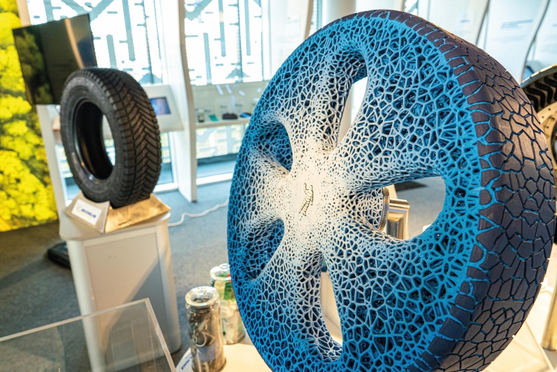 Several major tyre manufacturers are seeking to confront the issue of TRWP in terms of design. Michelin, for example, is developing the ‘Vision Concept tyre’. Cyrille Roget of Michelin states, 'Michelin Uptis is made exactly as a standard tyre in terms of materials…The only difference comes from the reinforcements.' Michelin Uptis is made using fibreglass. 'This specific fibreglass is made internally and is protected by 50 patents…It is embedded in resin and then inside normal rubber.'